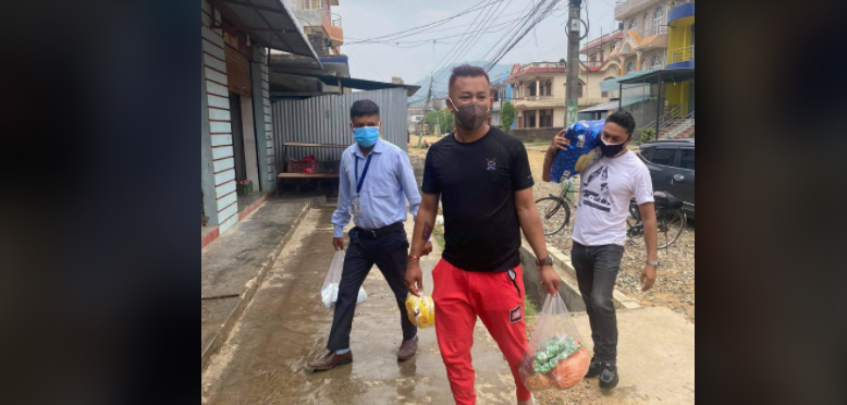 कोरोना संक्रमित परिवारलाई व्यवसायी सापकोटाको खाद्यान्न सहयोग