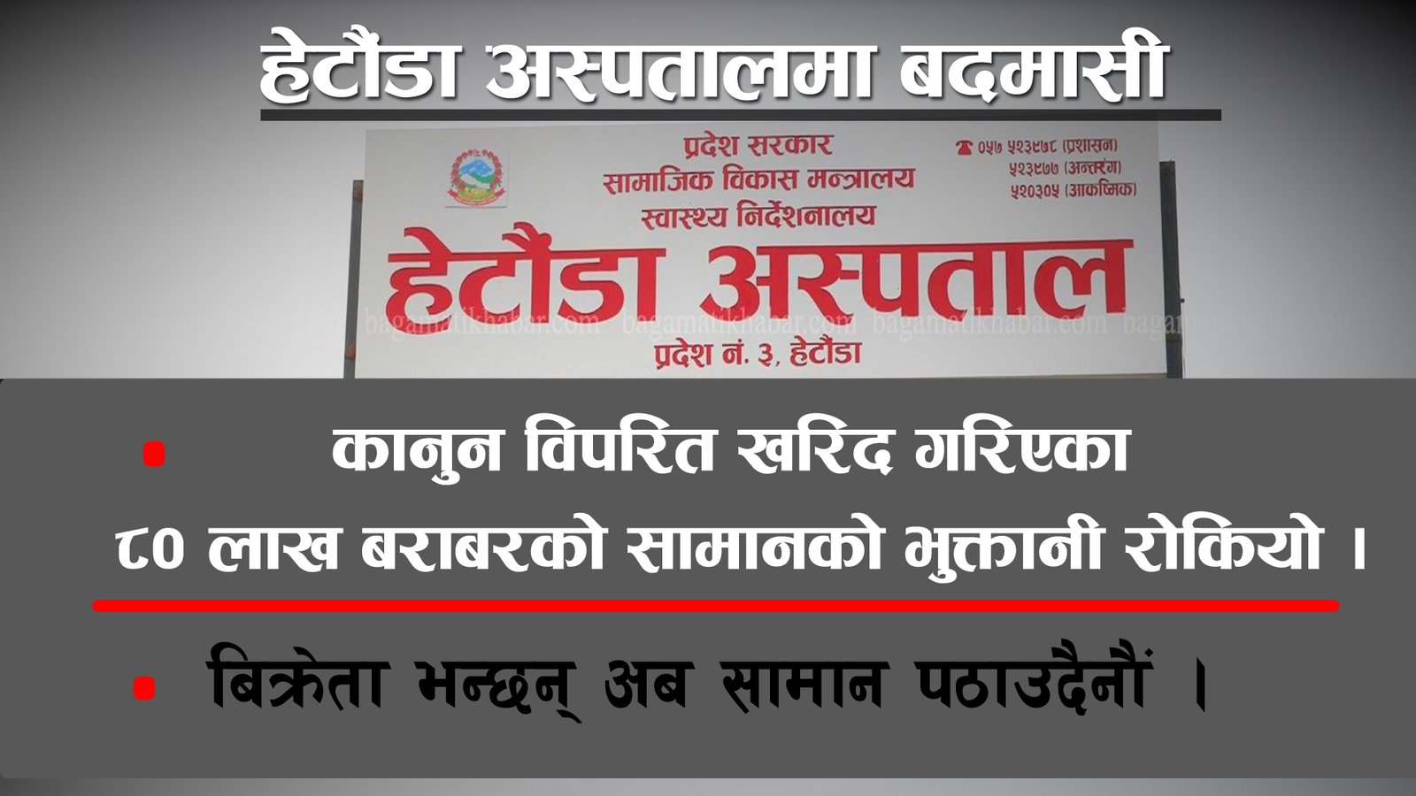 हेटौंडा अस्पतालमा कानुन मिचेर ८० लाख बढीको सामान खरिद गरेको भेटियो