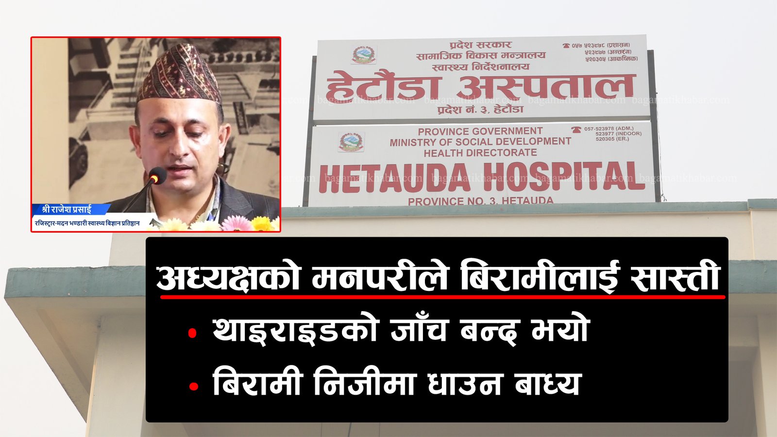 हेटौंडा अस्पतालका अध्यक्षको मनलाग्दीले बिरामीलाई सास्ती, थाइराइडको जांच बन्द