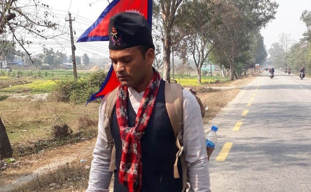 उनले काँकरभिट्टाको मेची नदि किनारबाट उल्टो पैदलयात्रा गर्दै सो यात्राको सुरुवात् गरेका थिए ।