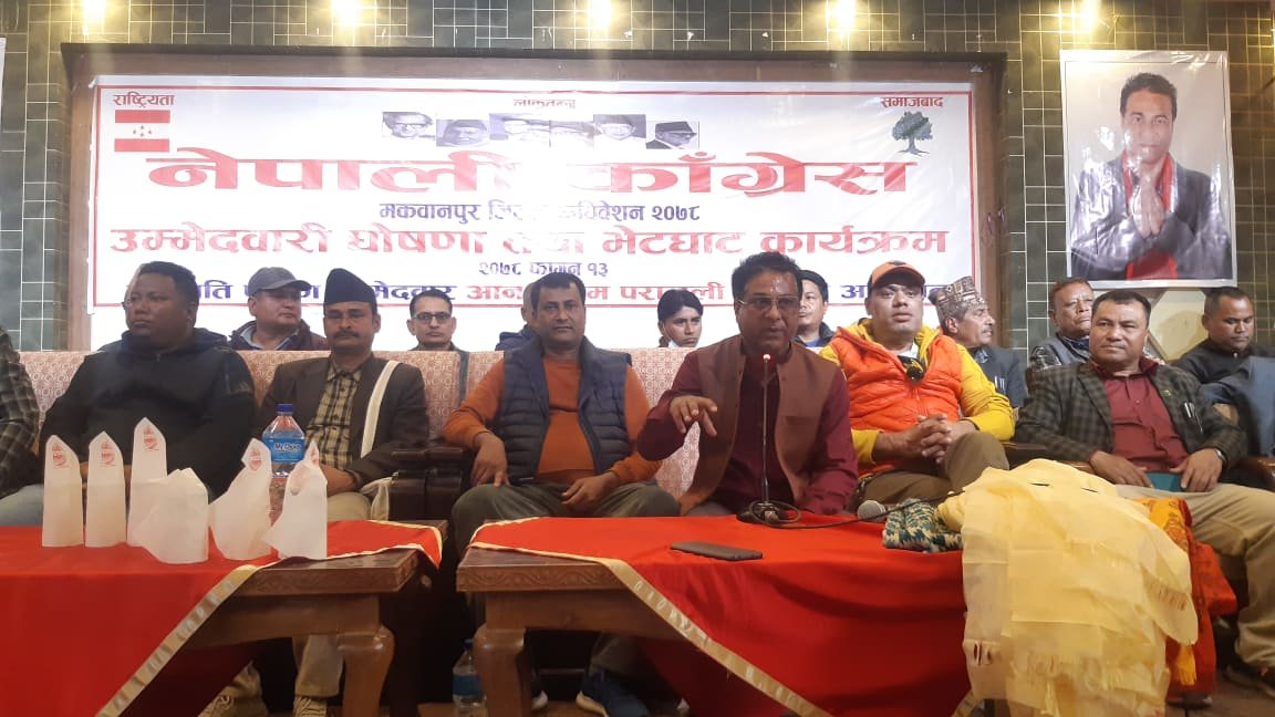 नेपाली काँग्रेस मकवानपुरको जिल्ला अधिवेशनमा सभापतिका दाबेदार आनन्दराम पराजुलीले आफ्नो उम्मेदवारी घोषणा गरेका छन् ।