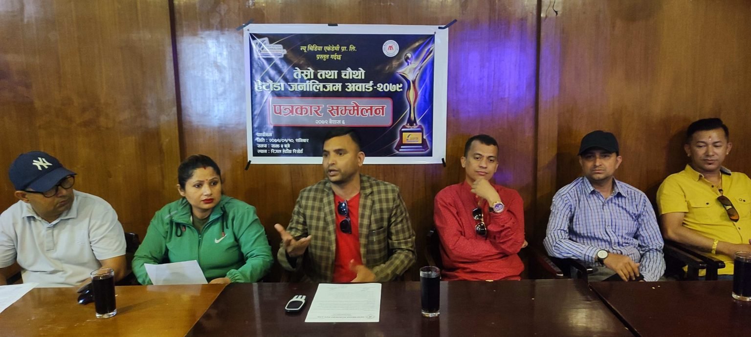 मकवानपुरका पत्रकारहरुलाई प्रदान गरिने तेस्रो तथा चौथो ‘हेटौँडा जर्नालिजम अवार्ड’ बैशाख १० गते शनिबार हेटौंडामा हुने भएको छ । न्यू मिडिया एकेडेमी एकेडेमी प्रालिले मंगलबार हेटौँडामा पत्रकार सम्मेलन गरी अवार्ड यही महिनाको १० गते हेटौंडा–५ मा रहेको रिगल हेटौंडा रिसोर्टमा हुने जनाइएको छ ।