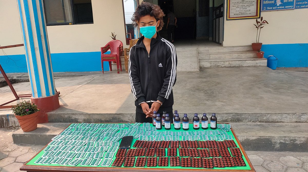 हेटौंडा उपमहानगरपालिका -७ नागस्वती बस्ने २२ वर्षीय सन्देश ब्लोनलाई नियन्त्रित लागुऔषधसहित प्रहरीले पक्राउ गरेको छ। लागुऔषध ट्रामा १ हजार ४० पिस, नाईट्राभेट ५ सय २५ ट्याब्लेट र कोरेक्स १० बोतलसहित शनिबार बिहान प्रहरीले पक्राउ गरेको हो ।